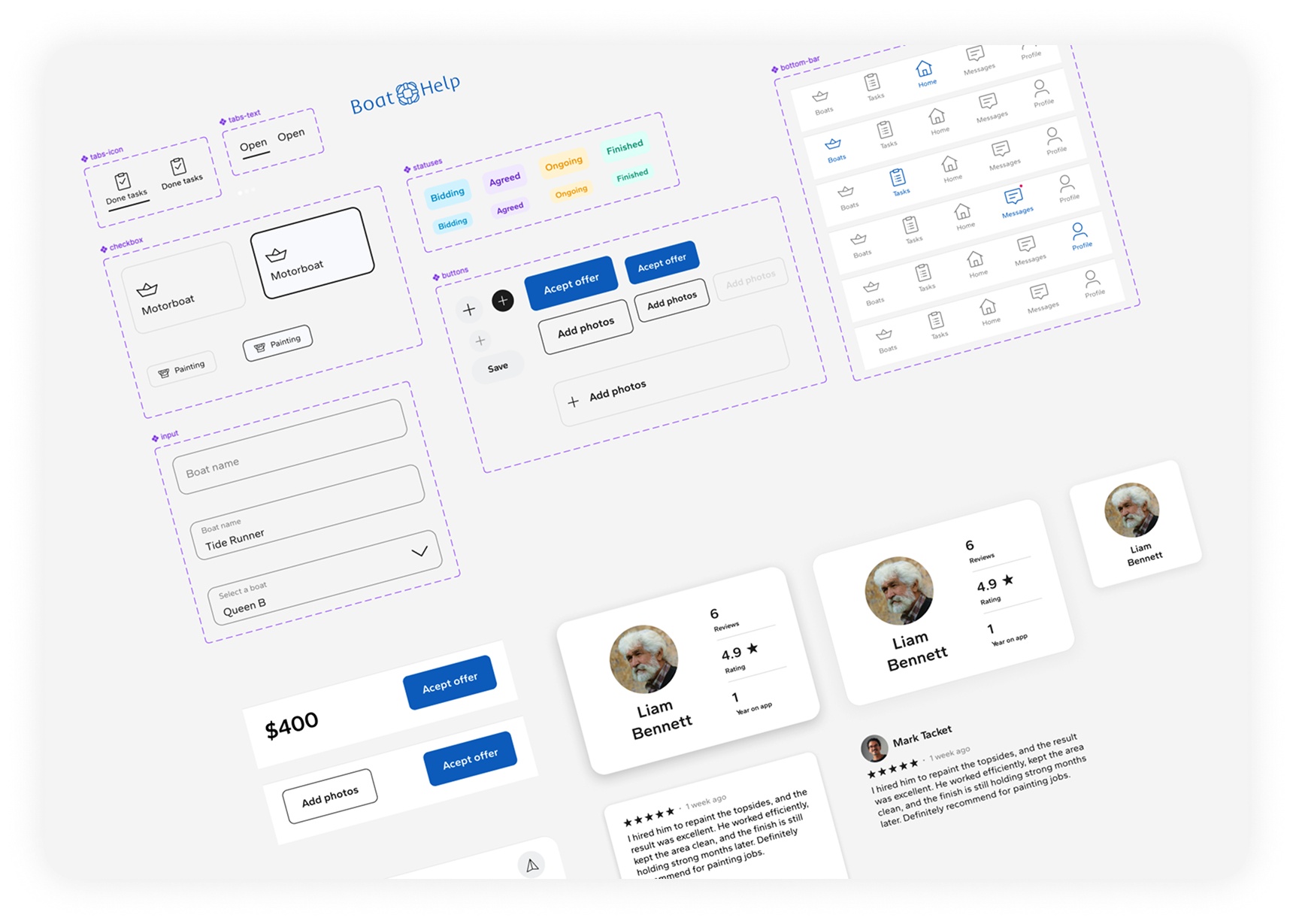 BoatHelp is a two-sided marketplace designed to simplify how boat owners find and hire reliable professionals for maintenance and repairs. The core UX challenge was to create a clear, frictionless flow for two distinct user roles while keeping the process intuitive for users with varying levels of technical experience. The concept design is boat owner user oriented.