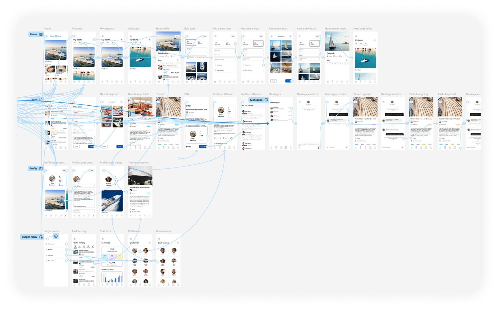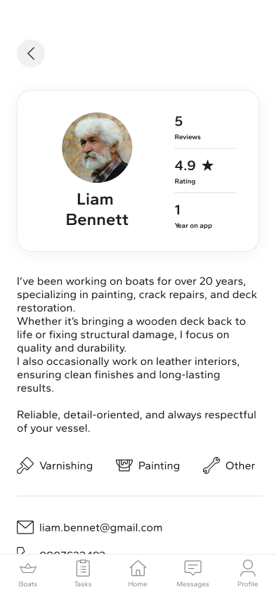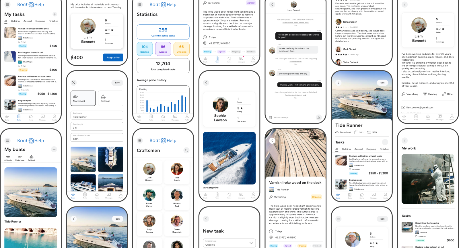 The design process was highly iterative, with multiple rounds of user testing and feedback shaping the final product. The resulting platform effectively addresses the unique needs of boat owners and craftsmen, providing a seamless experience that fosters trust and encourages repeat use.