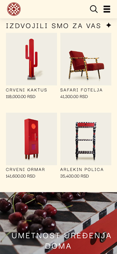 Featured pieces on the homepage serve as an entry point into the brand’s products. Rather than displaying a large catalog, the homepage focuses on a carefully curated selection of restored furniture. Red pieces were deliberately featured to introduce contrast, guide the user’s eye, and add character to an otherwise neutral and minimal interface.