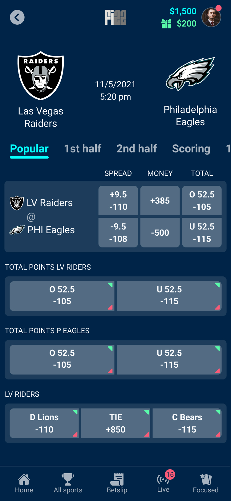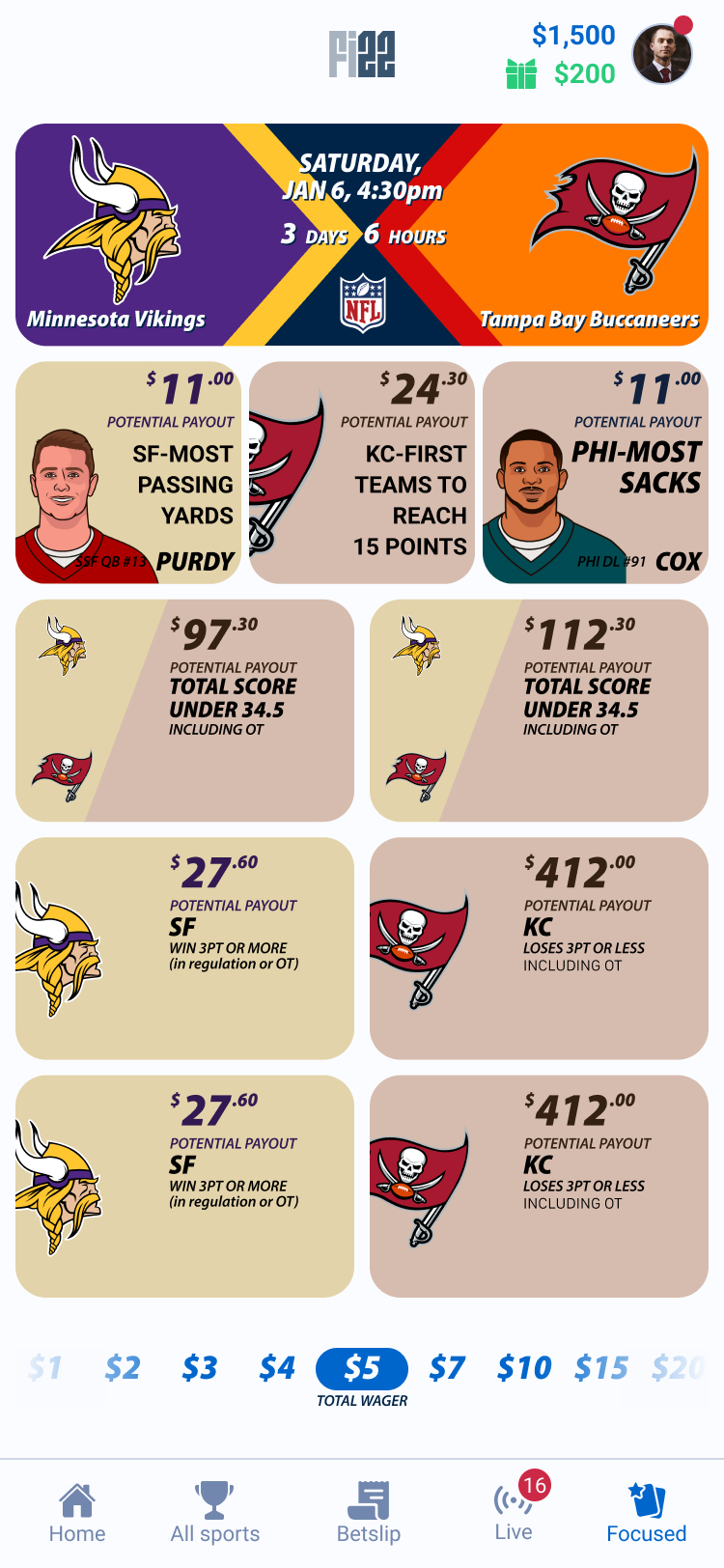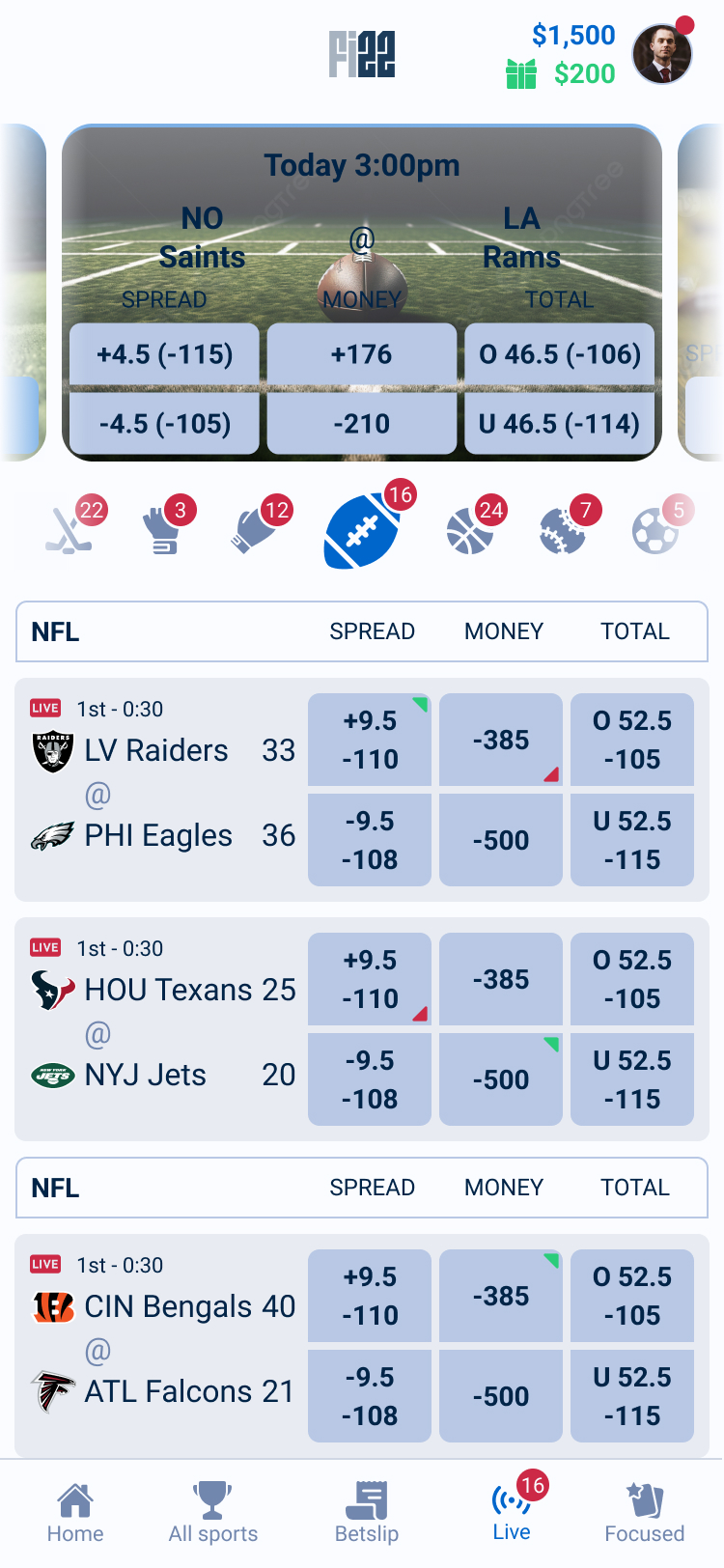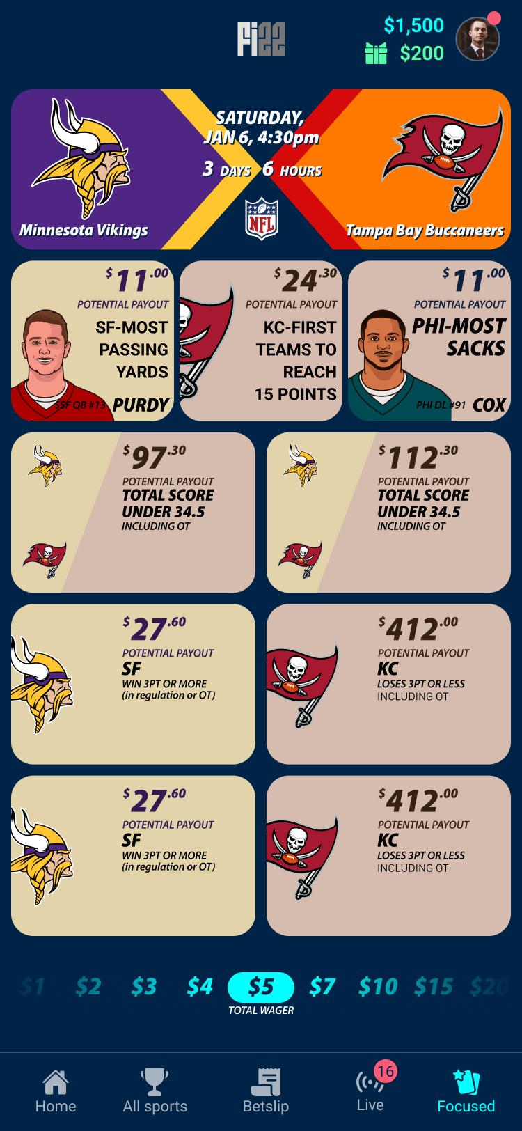 Focused Mode surfaces predefined player props in a streamlined layout, allowing users to quickly access the most relevant betting options without navigating through complex markets. By reducing choice overload, the feature supports faster decision-making during live games.