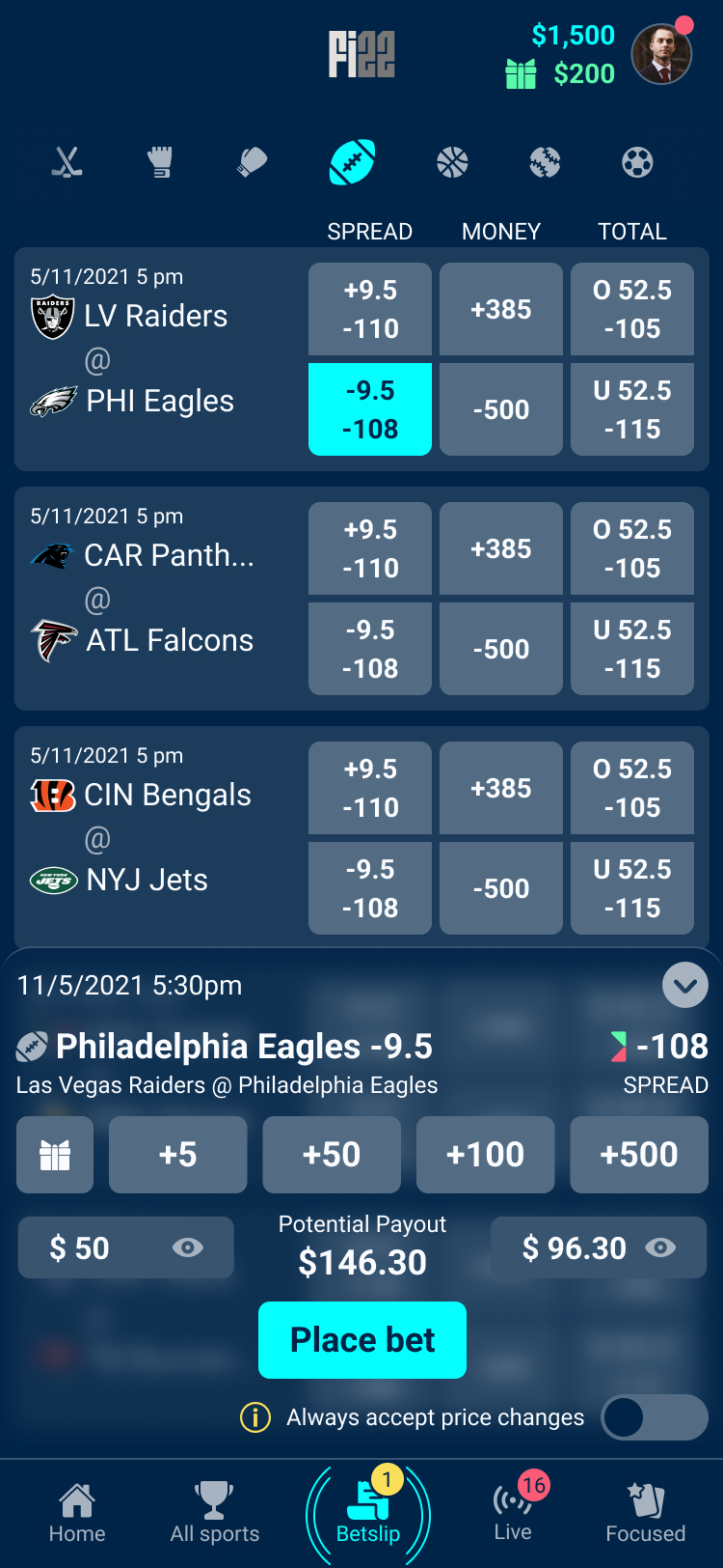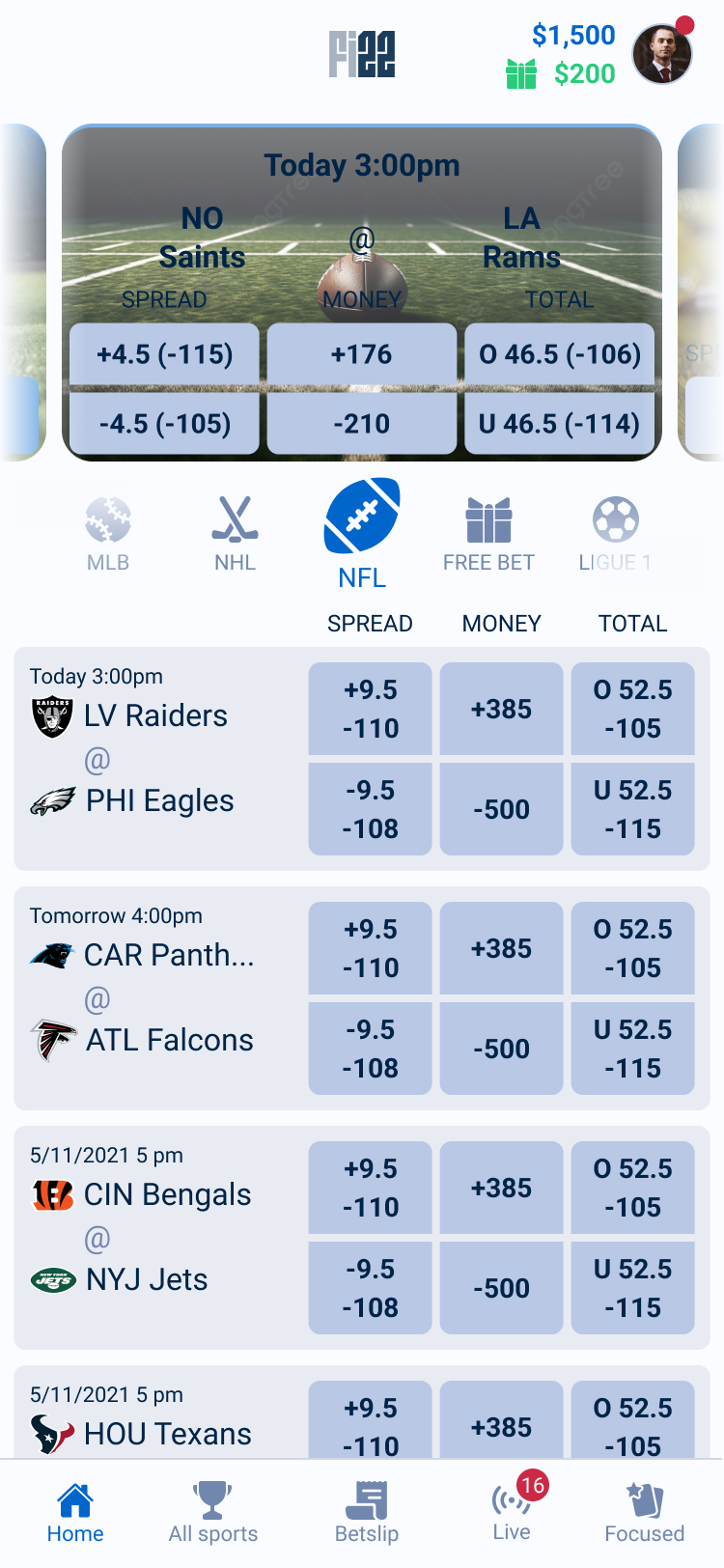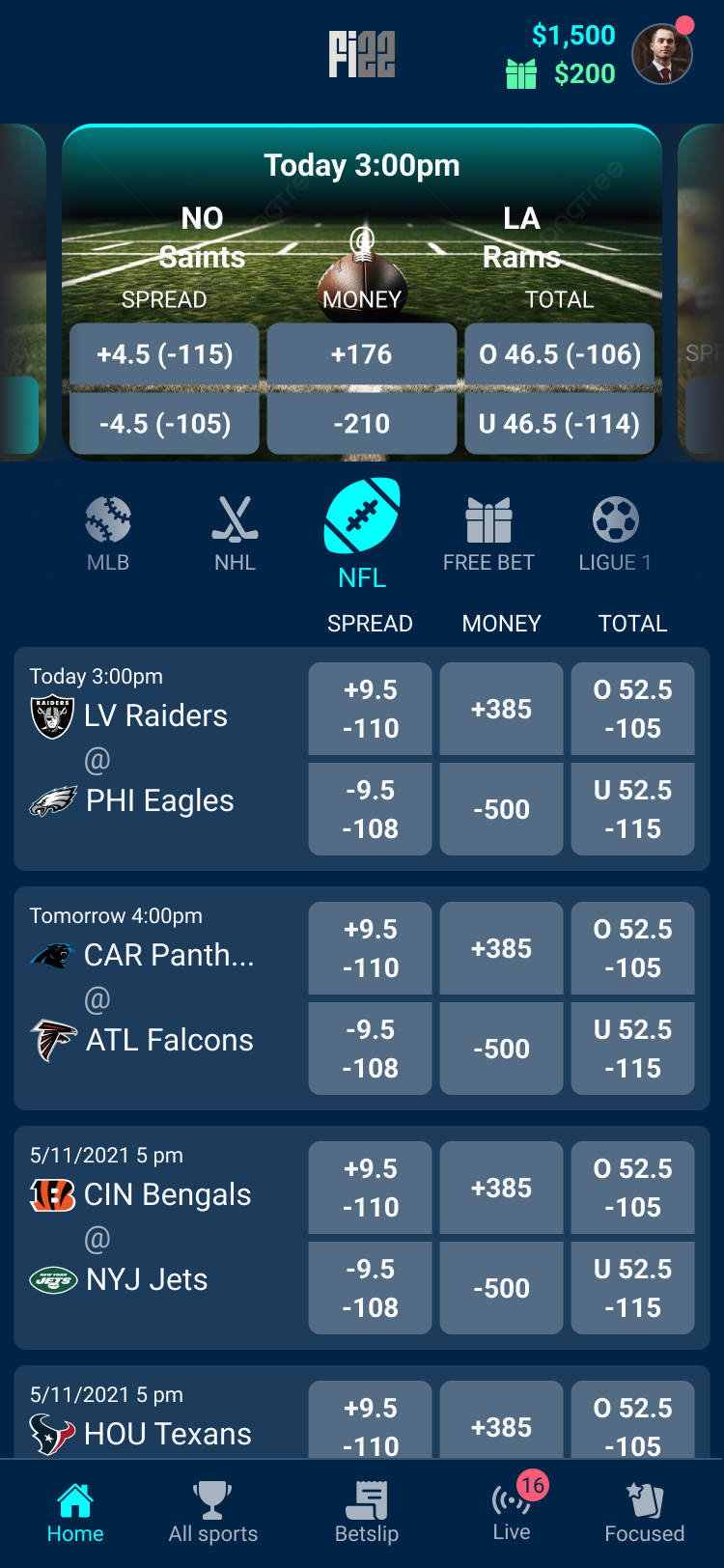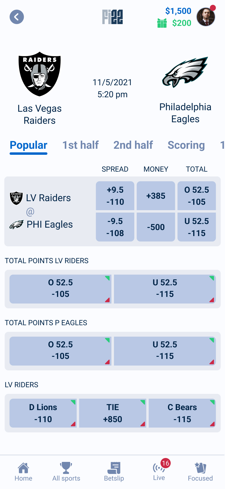 Focused Mode surfaces predefined player props in a streamlined layout, allowing users to quickly access the most relevant betting options without navigating through complex markets. By reducing choice overload, the feature supports faster decision-making during live games.
