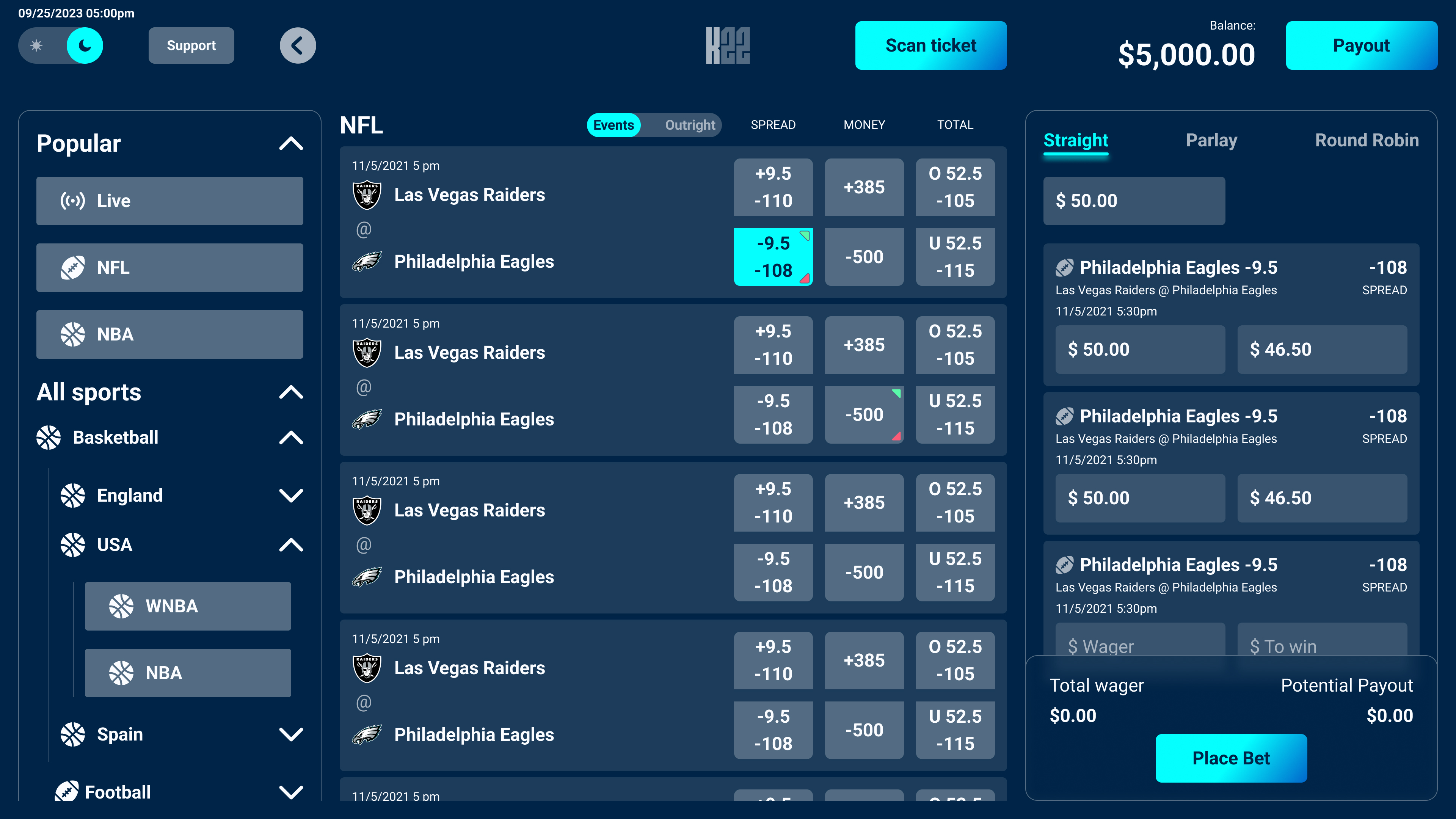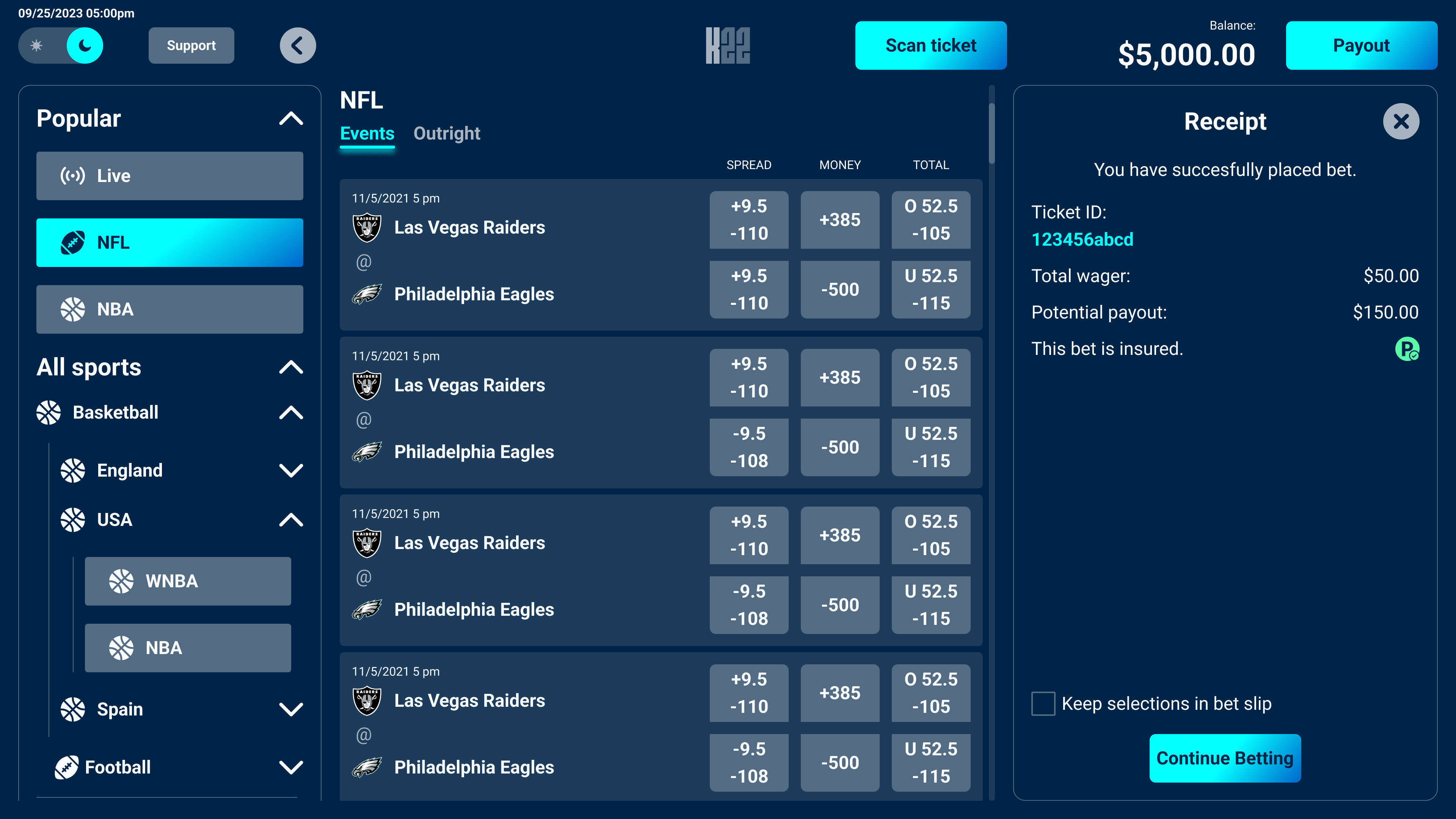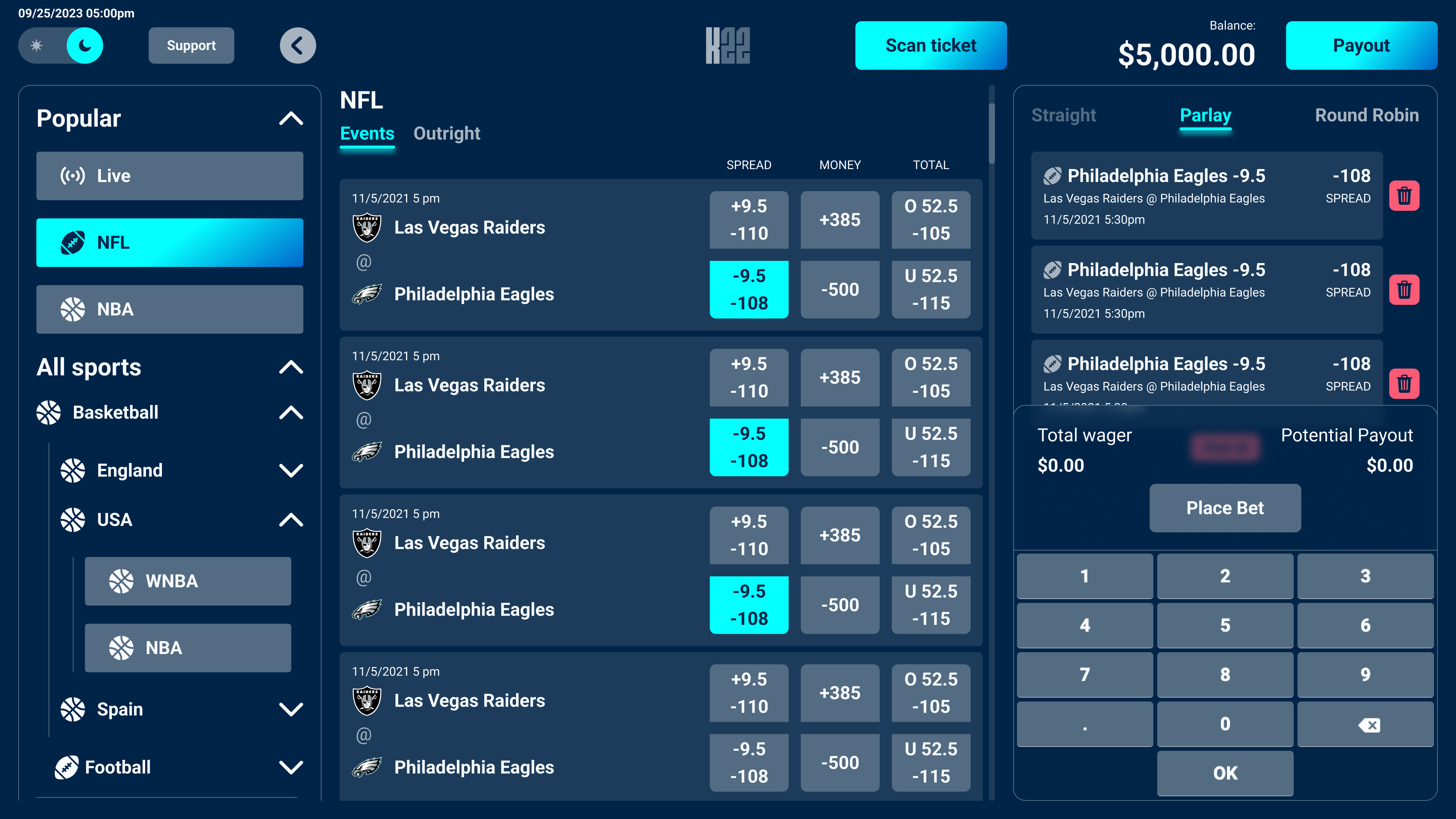 Built for self-service use, the kiosk interface adapts the core betting experience to a touch-first, hardware-driven context. The design accounts for varied user familiarity, environmental distractions, and durability requirements common in casino settings. The interface prioritizes large touch targets, clear visual hierarchy, and simplified flows, enabling users to place bets quickly and confidently with minimal instruction.