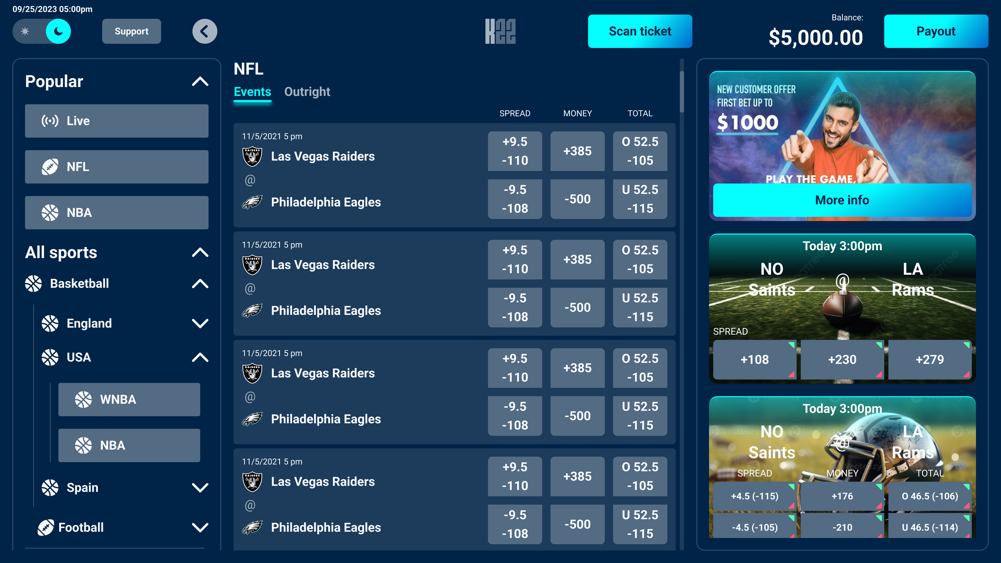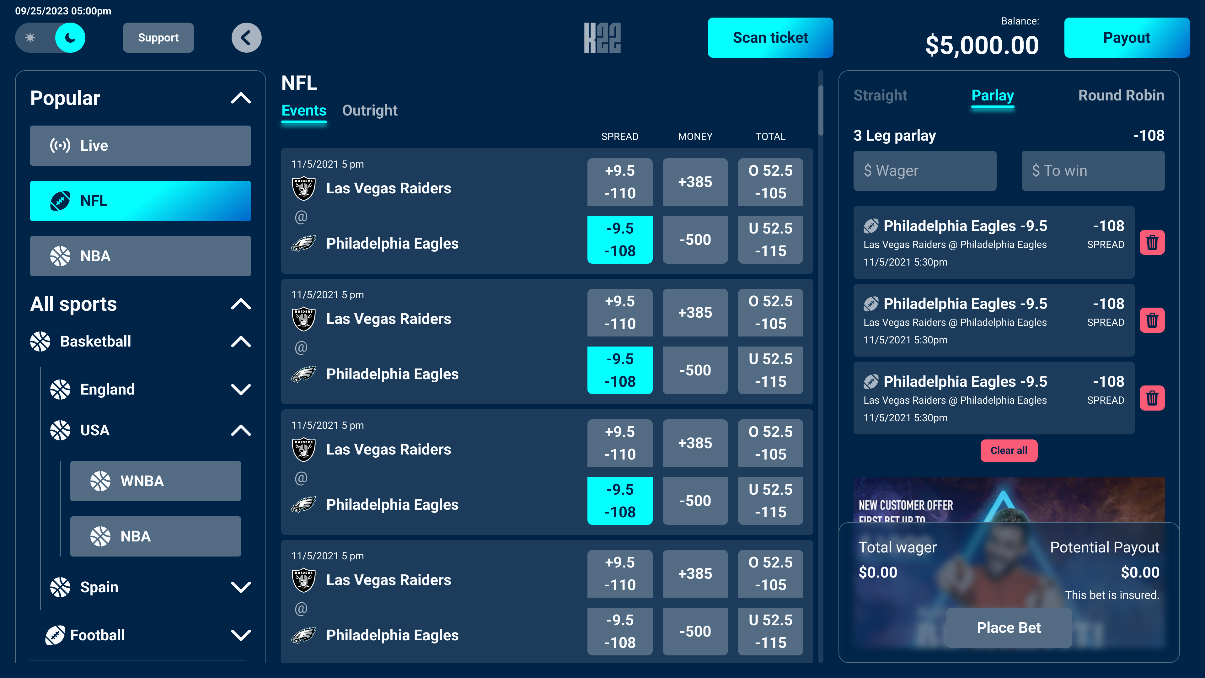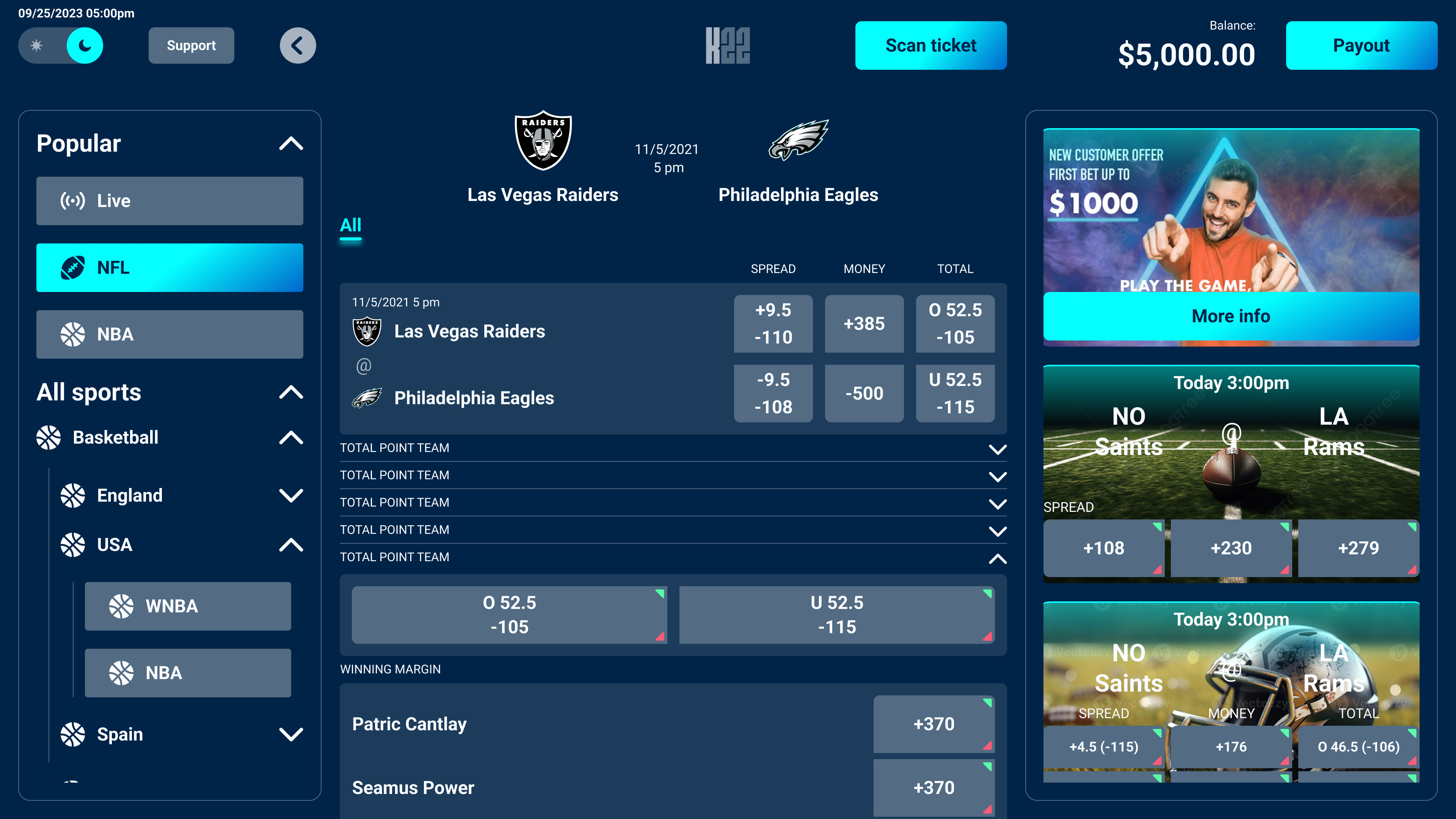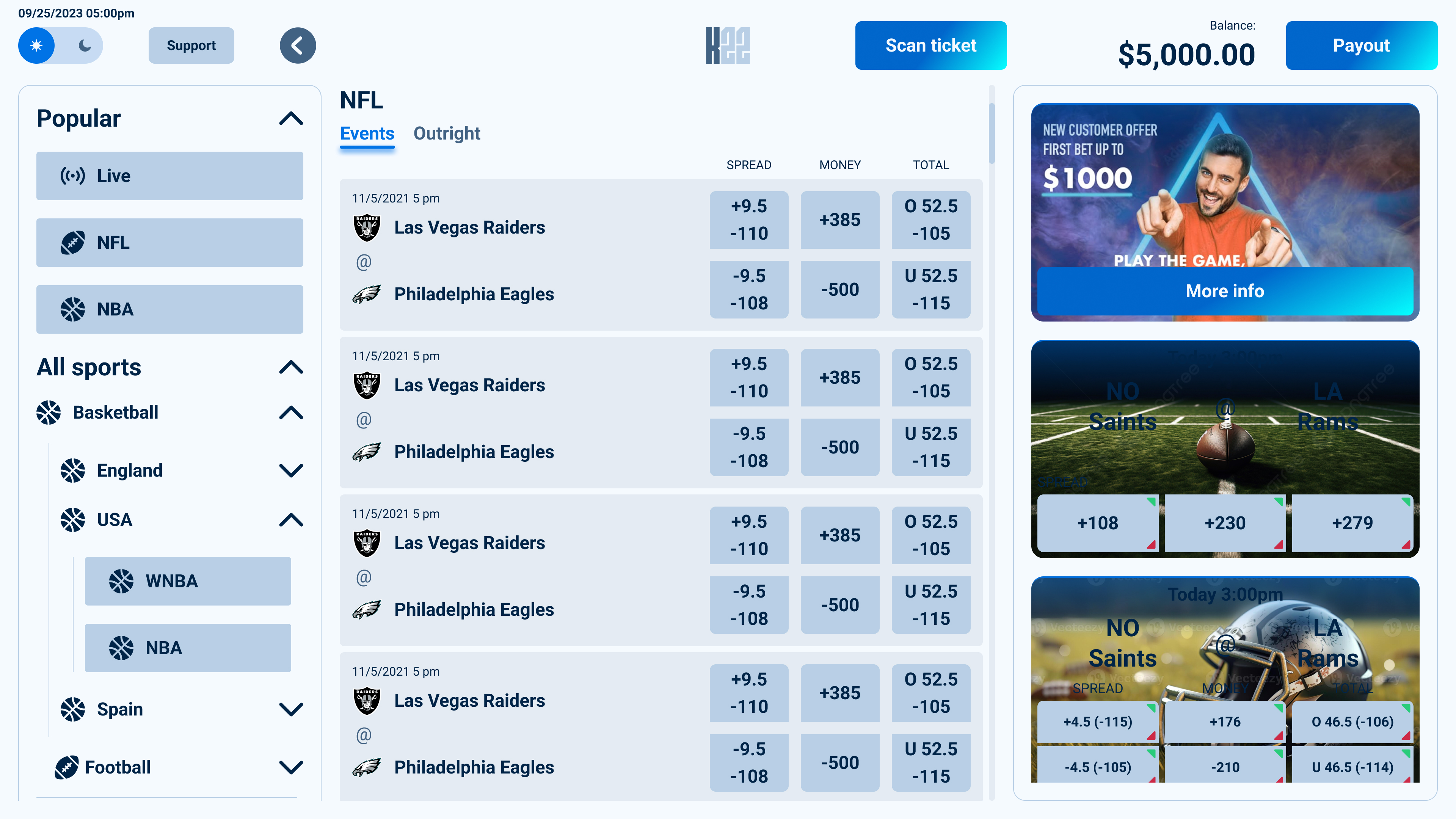 Built for self-service use, the kiosk interface adapts the core betting experience to a touch-first, hardware-driven context. The design accounts for varied user familiarity, environmental distractions, and durability requirements common in casino settings. The interface prioritizes large touch targets, clear visual hierarchy, and simplified flows, enabling users to place bets quickly and confidently with minimal instruction.