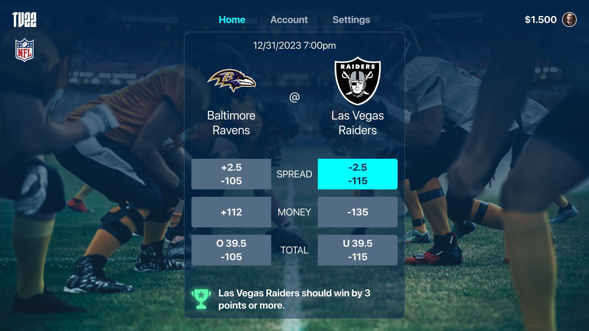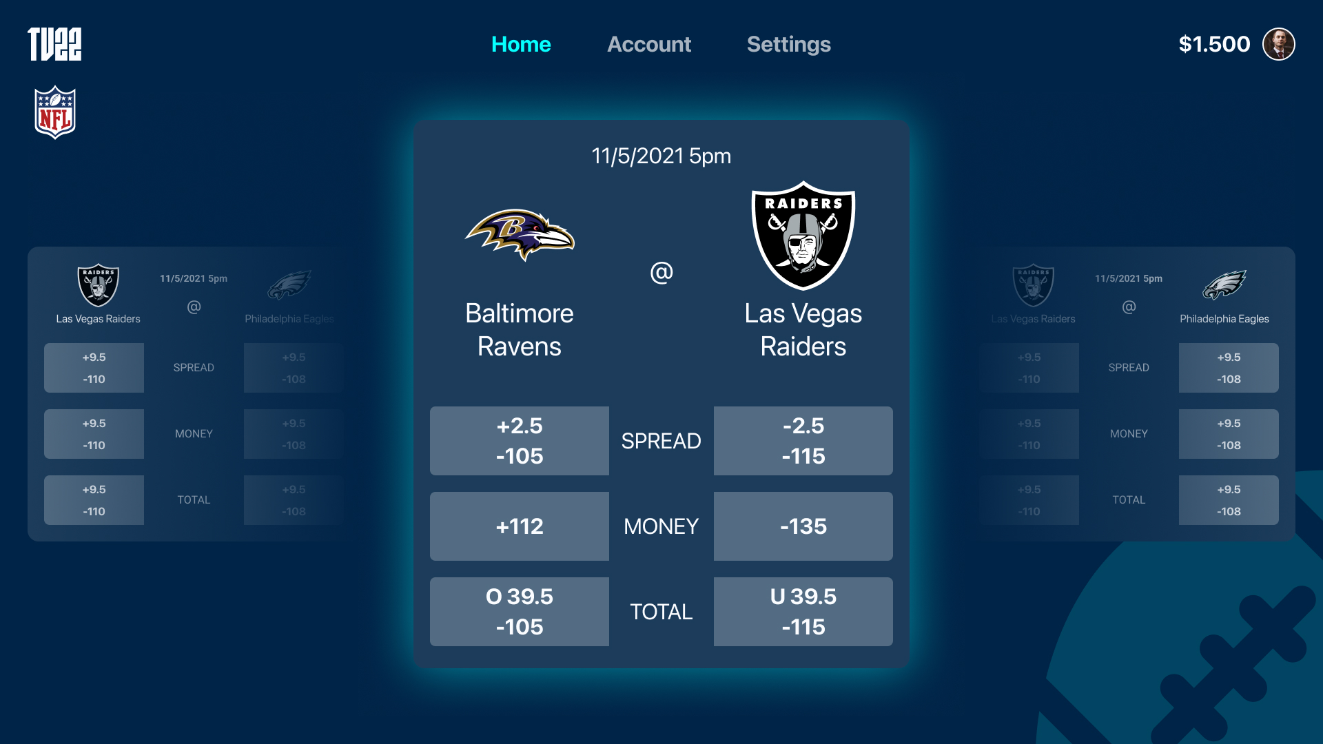 The Apple TV app is designed for lean-back interaction, translating complex betting content into a TV-friendly interface. Special attention was given to navigation using the Siri Remote, with clear focus states, large touch targets, and predictable movement to ensure smooth interaction despite the limitations of remote-based control.