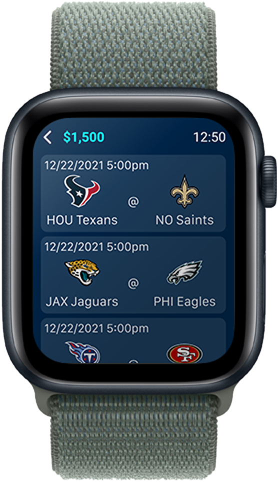 The watchOS experience is intentionally minimal, translating complex betting data into clear, digestible moments. The design supports rapid awareness and lightweight interactions rather than deep navigation.